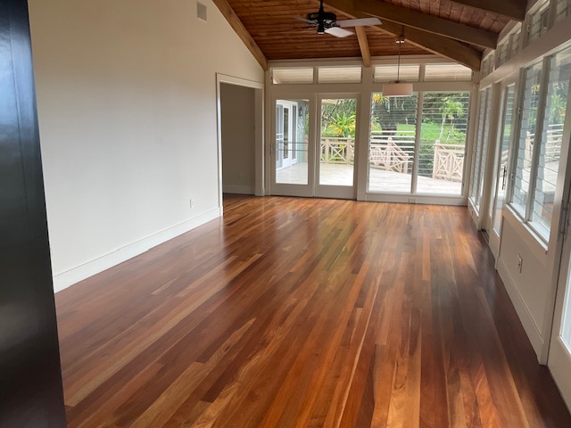 $3,950/month + GET Fully Renovated Large 2Bed/2.5 Bath; Large living room, separate dining room; Master suite w/bath and private ocean view lanai; high beam ceilings newly built partially furnished ocean view Custom Estate w/ and electric gate on 7.5 acre private estate w/Subzero/Viking/Stainless/DW granite kitchen; washer/dryer; hardwood floors; multiple lanais; garage; landscape maintenance included; no smoking/no pets